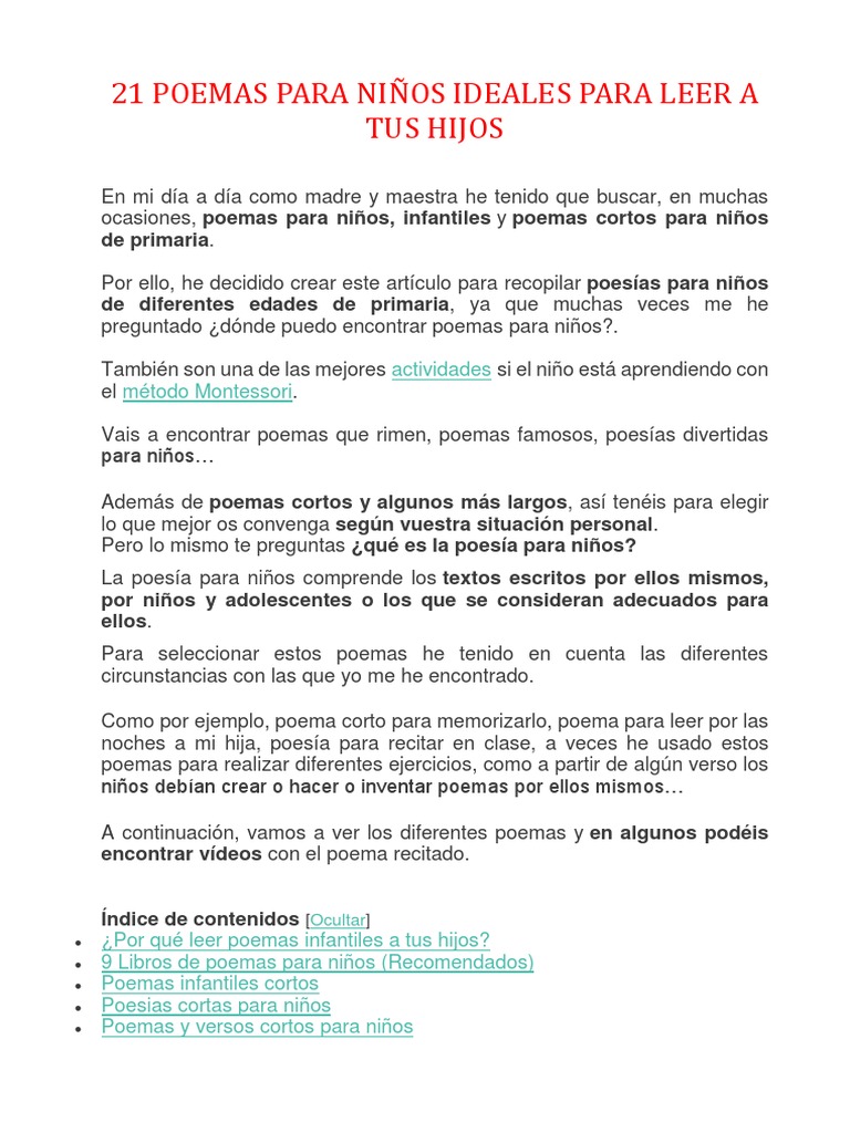 21 Poemas Para Ninos Ideales Para Leer A Tus Hijos Aquisicion De